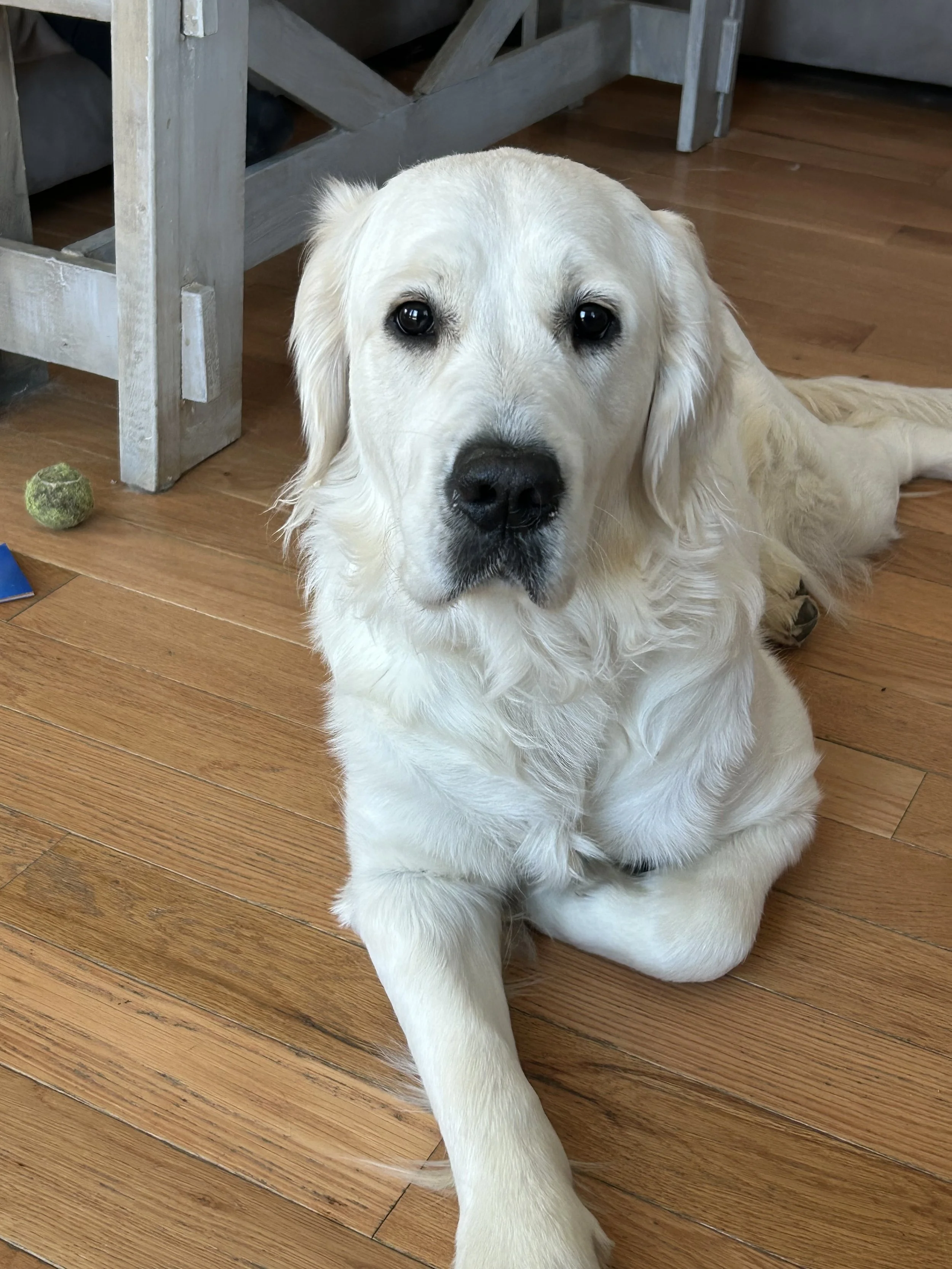 Lucy is a lover. She will let anyone and any dog take a toy out of her mouth. She loves her ball. She will carry it with her from inside the house to outside and then back in again. She is loyal girl who loves nothing more to be with her family.